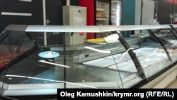 Как сообщает корреспондент Крым.Реалии, больше всего бросается в глаза нехватка мясных продуктов. Холодильники с мясом стоят полупустые, а свинину в магазин вообще не завезли.