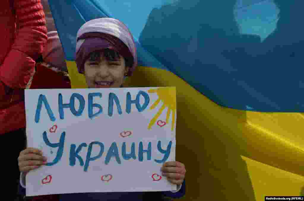 Проукраинские демонстранты на акции протеста против российской агрессии у памятника Шевченко в Симферополе, 10 марта