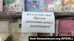 Другая характерная картина в эти дни в симферопольских магазинах – изменение цен в течение дня. Нередко на ценниках указана одна сумма, а на кассе – оказывается совершенно другая. Так, в одном из симферопольских магазинов посуды прямо на прилавке можно встретить надпись на листе: «Изменение цен! Просим уточнять цены у менеджеров!».