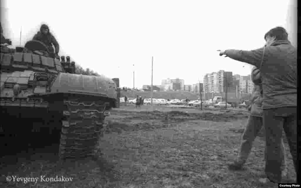 В 1990-е годы фотограф Евгений Кондаков работал в «Московских новостях» Егора Яковлева. В первую самостоятельную командировку Кондакова отправили в январе 1991 года в Вильнюс. Так он и оказался в самом центре событий в литовской столице. Тысячи людей вышли тогда на улицы Вильнюса поддержать решение парламента о независимости Литвы. В воскресенье 13 января в центр Вильнюса вошли советские танки...