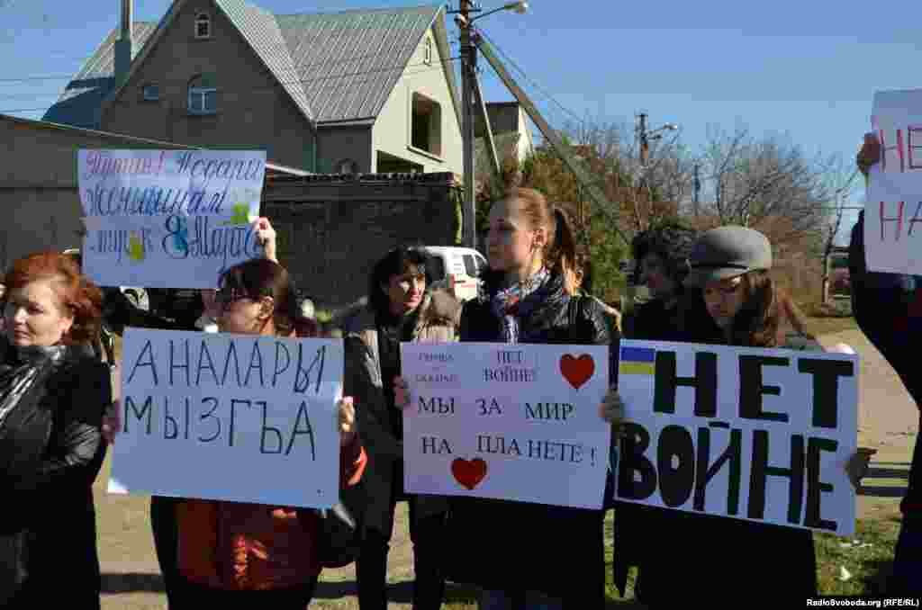 Ко второй годовщине российской аннексии украинского полуострова Крым.Реалии публикуют архивные фотографии, на которых видно, как проходила оккупация Крыма и как его жители ей сопротивлялись. 3 марта 2014 года несколько сотен крымских женщин провели на выезде из Симферополя акцию за мир и против российского вторжения в Крым. Они выстроились вдоль автотрассы с украинскими флажками, желтыми и голубыми шариками и плакатами «Крым - это Украина», «Любить, а не воевать», «Стоп Путин!», «Мы растим детей для счастья и мира», «Крымские татары, русские , Украинцы за мир »,« Верните нам мир! »и другие. Участники мероприятия говорили, что выступают за территориальную целостность Украины и против российской агрессии.