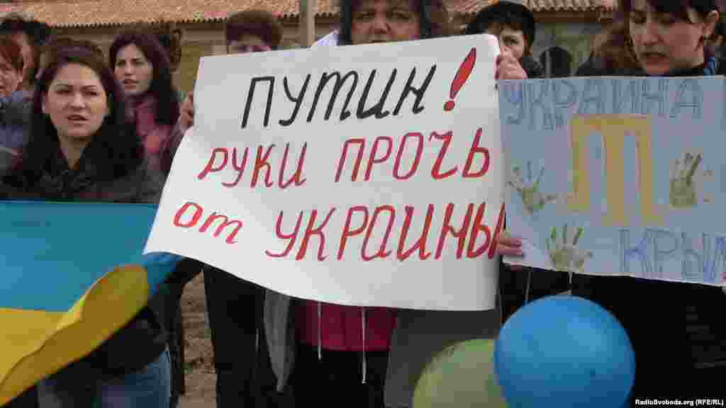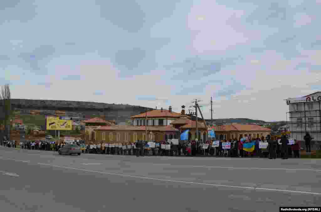 Ко второй годовщине российской аннексии украинского полуострова Крым.Реалии публикуют архивные фото, на которых видно, как в 2014 году проходила оккупация Крыма и как его жители ей сопротивлялись. Несколько сотен женщин с крымскотатарского массива Строгановка на окраине Симферополя в четверг, 6 марта, провели акцию за мир и против пребывания российских войск в Крыму. Они выстроились вдоль Объездной дороги с украинскими и российскими флагами, желтыми и голубыми воздушными шариками. Многие автомобили, которые проезжали по трассе, сигналили в поддержку акции.