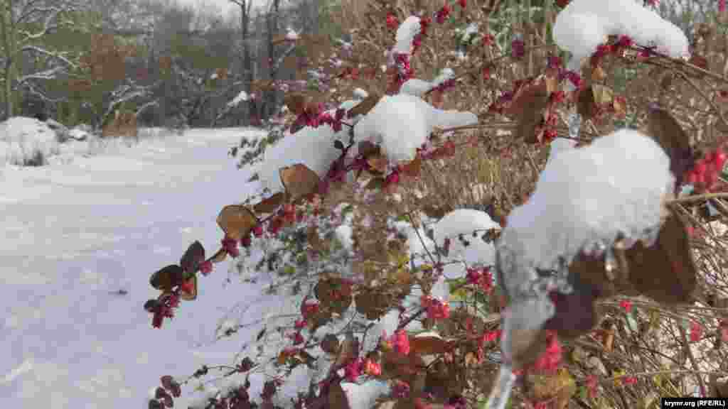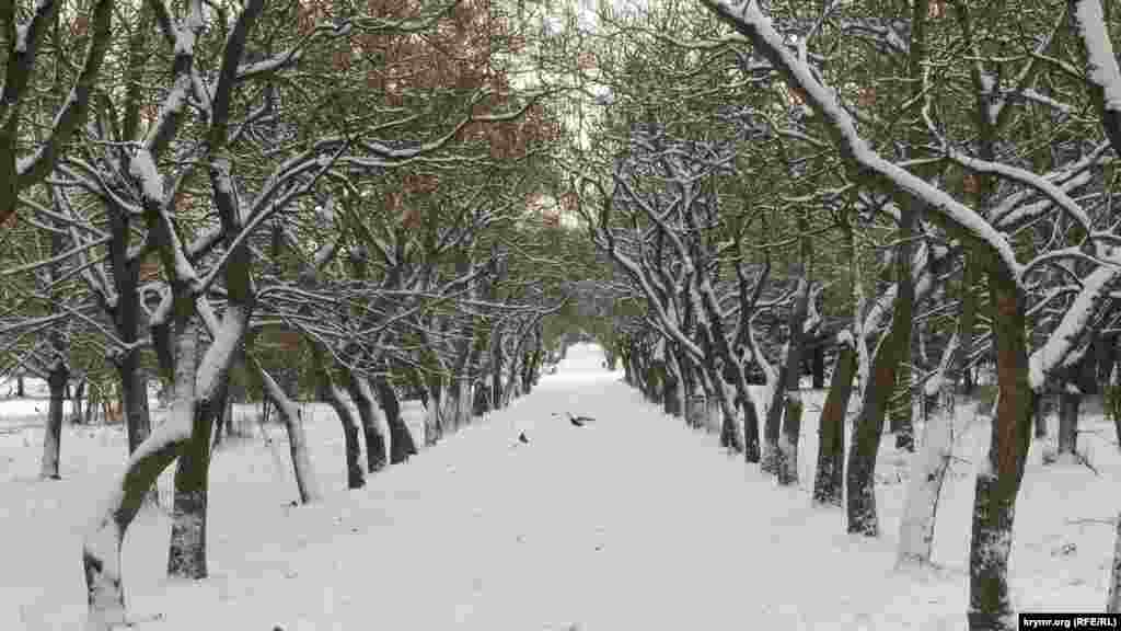 Зима в 2016 году преподнесла сюрприз крымчанам. Снег, который в Симферополе бывает крайне редко и лежит недолго, в декабре выпал практически в начале календарной зимы. Парки и скверы города стали похожи на иллюстрации к зимним сказкам.