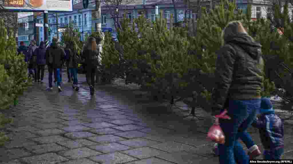 До Нового года осталось менее двух недель. В столице Крыма Симферополе уже установили праздничную елку, яркими фонариками украсили магазины и улицы. На елочных базарах продают разнообразные новогодние деревья. На праздничных ярмарках большой ассортимент праздничных сувениров, украшений и сладостей.