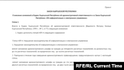 "Тексты абсолютно идентичны. Здесь надо рассматривать, что это была калька с российского закона, и авторы законопроекта абсолютно не учли особенности использования Интернета в республике, ну и другие особенности, которые связаны с нашей системой политической, с конституцией", – уверена экс-судья Конституционной палаты Верховного суда Кыргызстана Клара Сооронкулова. – Я считаю, этот закон... Вот он сейчас в России с 14-го года работает, и он является хорошим методом для политического преследования. Я думаю, и в нашей стране он будет использоваться именно как такой инструмент".