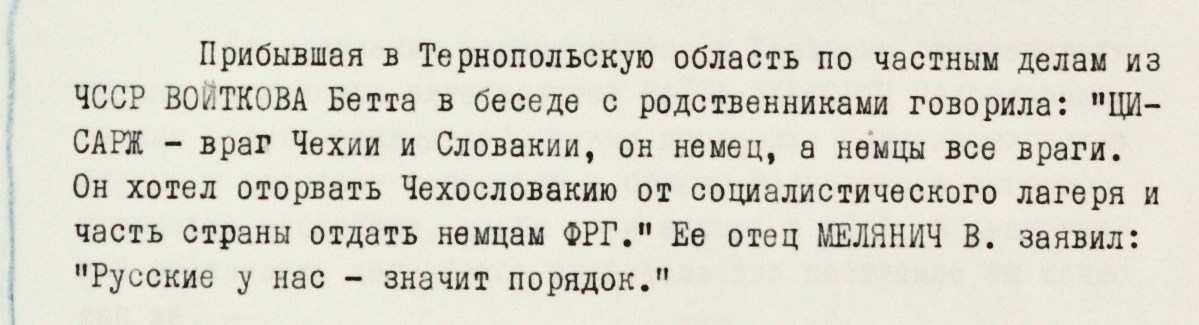 “Русские у нас – значит порядок”, – сказал в беседе с родственниками в Тернопольской области В. Мелянич.