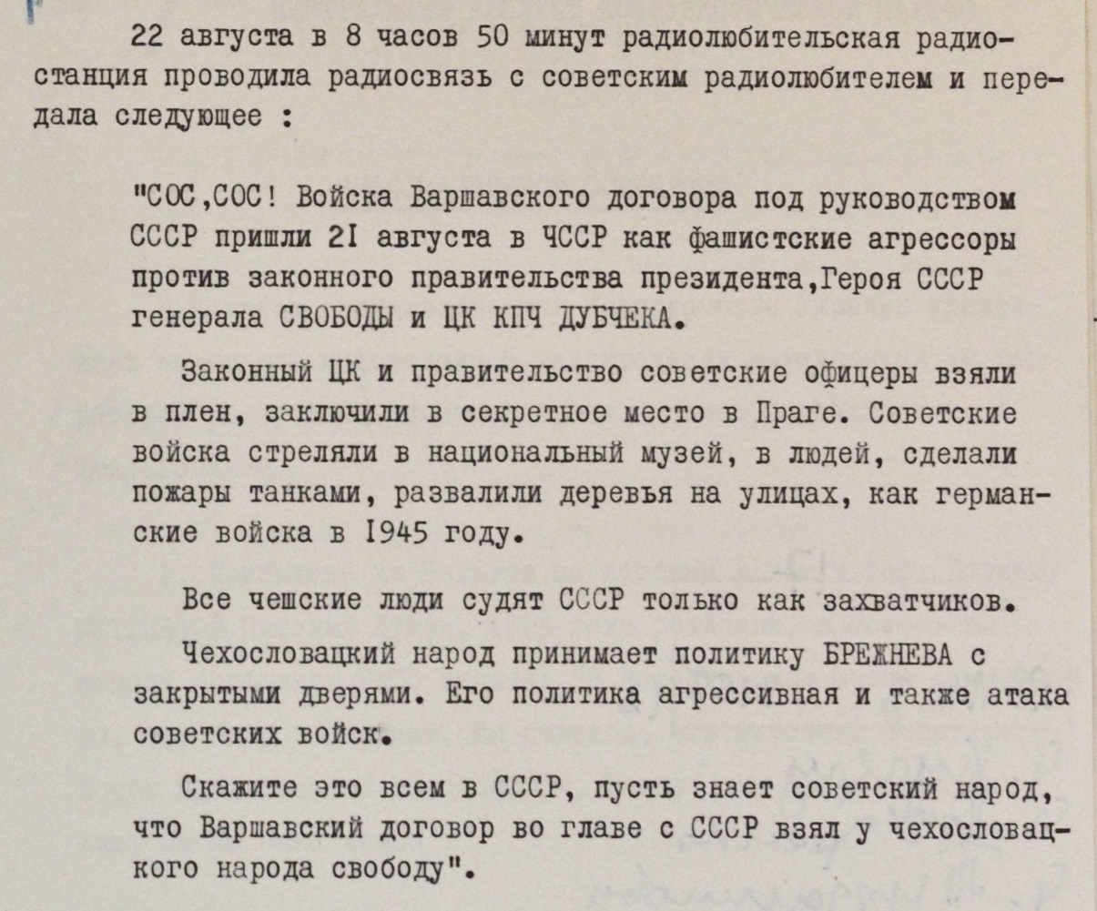 Радиолюбители из Чехословакии выходят на связь с советскими, пытаясь донести до них свою правду.