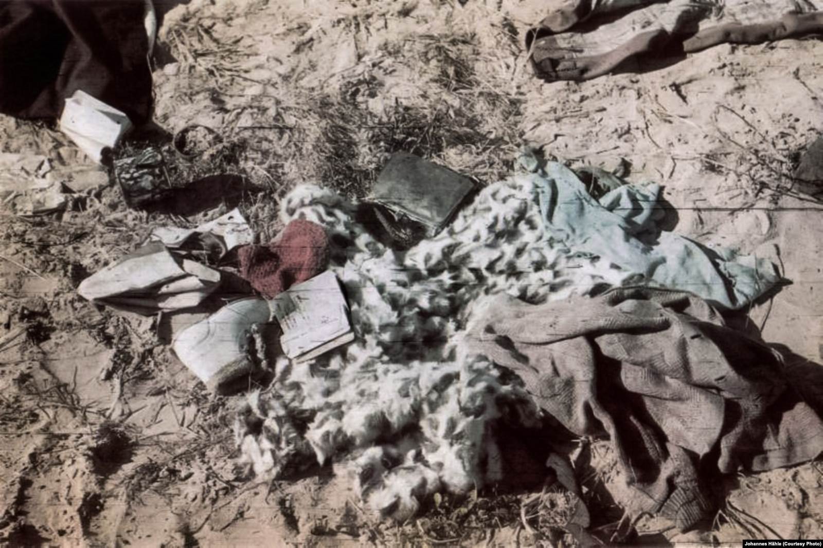 Для немца эти слова были непонятными, но скорее всего, речь идет о команде, которую убийцы выучили и отдавали своим жертвам: "Стать на колени".