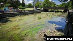Помимо этого Салгир покрылся тиной. Местами в реке начали прорастать болотные растения.