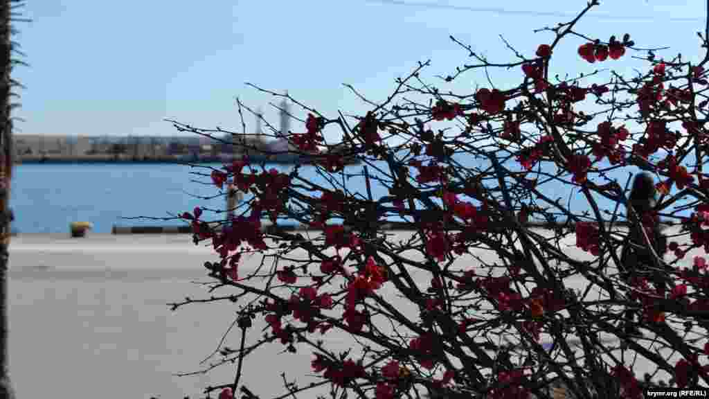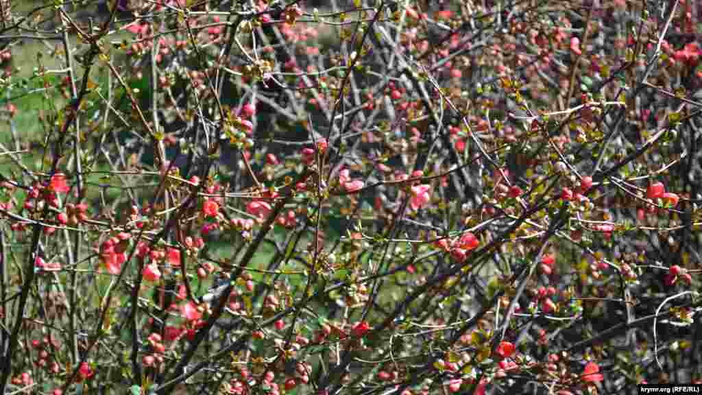 Весна в этом году пришла на удивление рано. В Алупке, например, уже цветет айва японская, которая обычно оживает в конце марта. Первые теплые дни пробудили от зимнего сна мать-и-мачеху, испанский дрог и сон-траву.