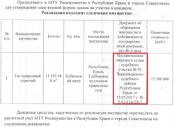 В документах говорится, что продаваемый газ является «федеральной собственностью» на основании постановления подконтрольного России мирового судебного участка № 92 Черноморского судебного района Крыма от 15 мая 2017 года.