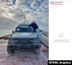 Радио Свобода удалось найти в социальной сети "ВКонтакте" аккаунт россиянина, который работает на судне "Муса Джалиль". 26 января, то есть во время одного из "оружейных" рейсов, о которых идет речь в статье SkyNews, он опубликовал фотографию, сделанную на палубе корабля. На ней он позирует рядом с американским автомобилем Ford Bronco. Рядом видны другие машины.
