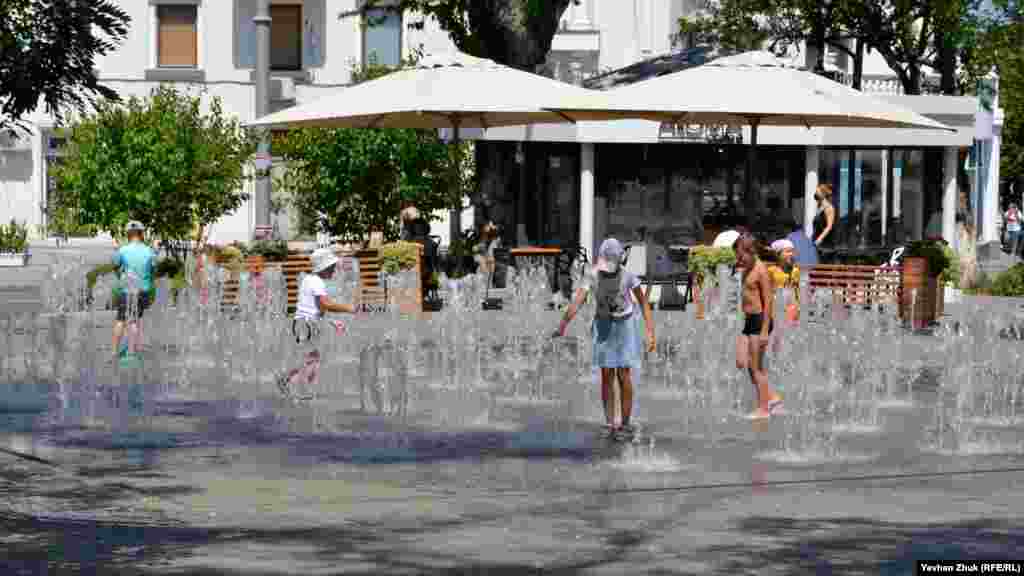 Дети купаются в фонтане на площади Ушакова в Севастополе | Крымское фото дня