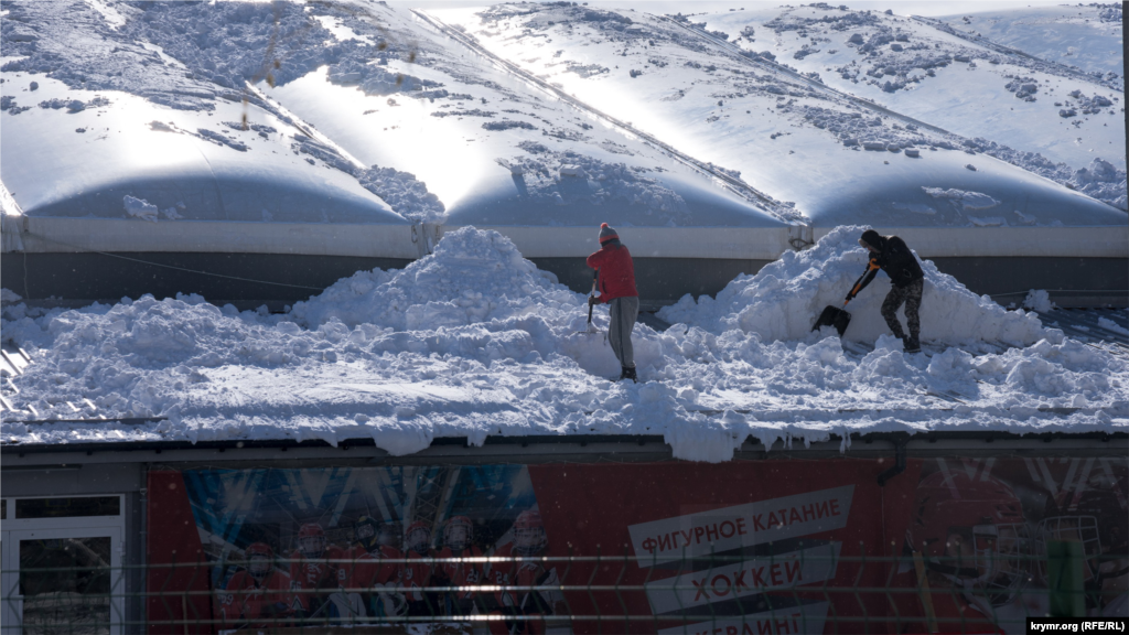 Ледовую арену смонтировали на улице Гурзуфской, в долине реки Салгир, в конце 2019 года. Разрешение на ее размещение, а также других объектов «Наследия» некоммерческой организации «Союз мастеров спорта» (г. Москва) сроком на 5 лет дала глава подконтрольной Кремлю городской администрации Симферополя Елена Проценко. Тогда же местные медиа сообщили, что российский фигурист и режиссер Илья Авербух планирует установить на улице Гурзуфская крымской столицы ледовую арену более чем на 1 300 посадочных мест. По словам Авербуха, ледовая площадка будет доступна симферопольцам круглый год. Днем здесь смогут тренироваться начинающие фигуристы, хоккеисты и керлингисты, а по вечерам будут проходить выступления известных спортсменов.