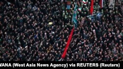 Десятки тысяч иранцев 5 января приняли участие в траурной процессии в честь начальника сил «Кудс» генерала Касема Сулеймани, убитого в Ираке, информирует Радіо Свобода.