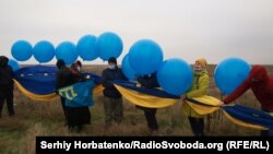 Волонтеры из Краматорска, Киева, Херсонской и Запорожской областей 4 декабря запустили в сторону Крыма флаг Украины размером 20 на 6 метров, сообщает корреспондент Крым.Реалии.