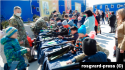 Российские власти открывают в крымских школах кадетские классы и проводят набор в военно-патриотическое движение «Юнармия». Детей учат разбирать оружие и стрелять, носить камуфляж и ходить строем.