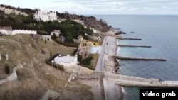 Крым.Реалии удалось снять с дрона резиденцию, расположенную между двумя крымскими городками – Симеизом и Алупкой на Южном берегу полуострова, которую связывают с пророссийским политиком Украины Виктором Медведчуком.