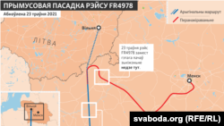 Самолет авиакомпании Ryanair, летевший из Афин в Вильнюс, приземлился в аэропорту Минска 23 мая около 13:00 по местному времени. Пилоты получили сообщение о минировании на борту. Аэропорт Минска заявил, что пилоты сами запросили посадку. Однако глава Ryanair Майкл Лири это опроверг и назвал то, что произошло, "государственным угоном".