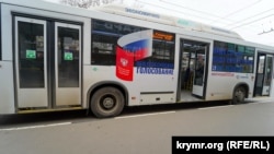 На городском транспорте в Симферополе начали размещать агитацию, чтобы местные жители пришли голосовать за поправки в Конституцию России, сообщает корреспондент Крым.Реалии.