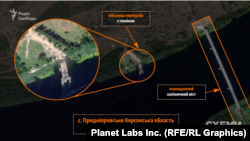 Подтверждающие снимки имеются в распоряжении «Схем» (проект Радіо Свобода). Это уже вторая переправа, построенная оккупантами после ударов Вооруженных сил Украины по Антоновскому автомобильному и железнодорожному мостам. Как сообщала ранее британская разведка, российские войска построили возле Херсона два понтонных моста и оборудовали паромную переправу, чтобы компенсировать повреждение этих мостов.
