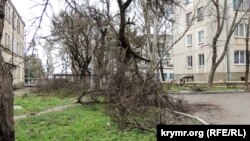 Как сообщает корреспондент Крым.Реалии, в этом районе Керчи можно увидеть большое количество обломанных веток, некоторые из них могут представлять угрозу прохожим.
