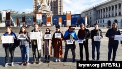 В Киеве на Майдане Независимости 1 октября прошла акция в поддержку гражданского журналиста, блогера из Крыма Наримана Мемедеминова, которого российские правоохранители обвиняют в публичных призывах к терроризму.