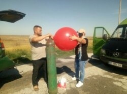 Волонтеры из Славянска 15 августа запустили на надувных шарах 25-метровый украинский флаг в сторону аннексированного Крыма, сообщает корреспондент Крым.Реалии.
