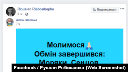 Пост генерального прокурора Руслана Рябошапки журналисты посчитали официальным источником и начали сообщать об ожидаемом обмене.