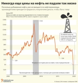 Справка: Цена на российскую нефть марки Urals во вторник 21 апреля снижалась до уровня декабря 1998 года – 8,48 долларов за баррель с поставкой в порты Средиземноморья. Цена на российскую нефть рассчитывается на основе торгующейся на бирже нефти марки Brent, она в ходе торгов во вторник дешевела ниже 19 долларов за барелль. Это минимальный уровень за 18 лет – с 2002 года.