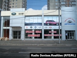 Бывший продуктовый магазин «Риск». В мирное время возле него стояли столы с зонтиками – там было кафе, где отдыхали дончане.