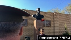 Когда люди, пришедшие на открытие бюста генералиссимусу, начали расходиться, к памятнику Сталину подошел глава регионального отделения "Мемориала" Александр Рудницкий – эта организация тоже выступала против установки бюста. Он сфотографировал таблички, висящие на стене с двух сторон от памятника, и удалился, уклонившись от комментариев.