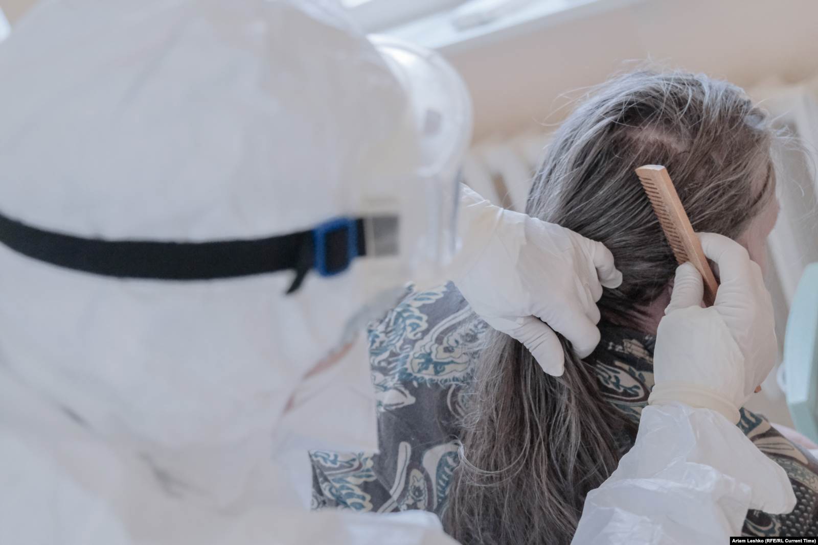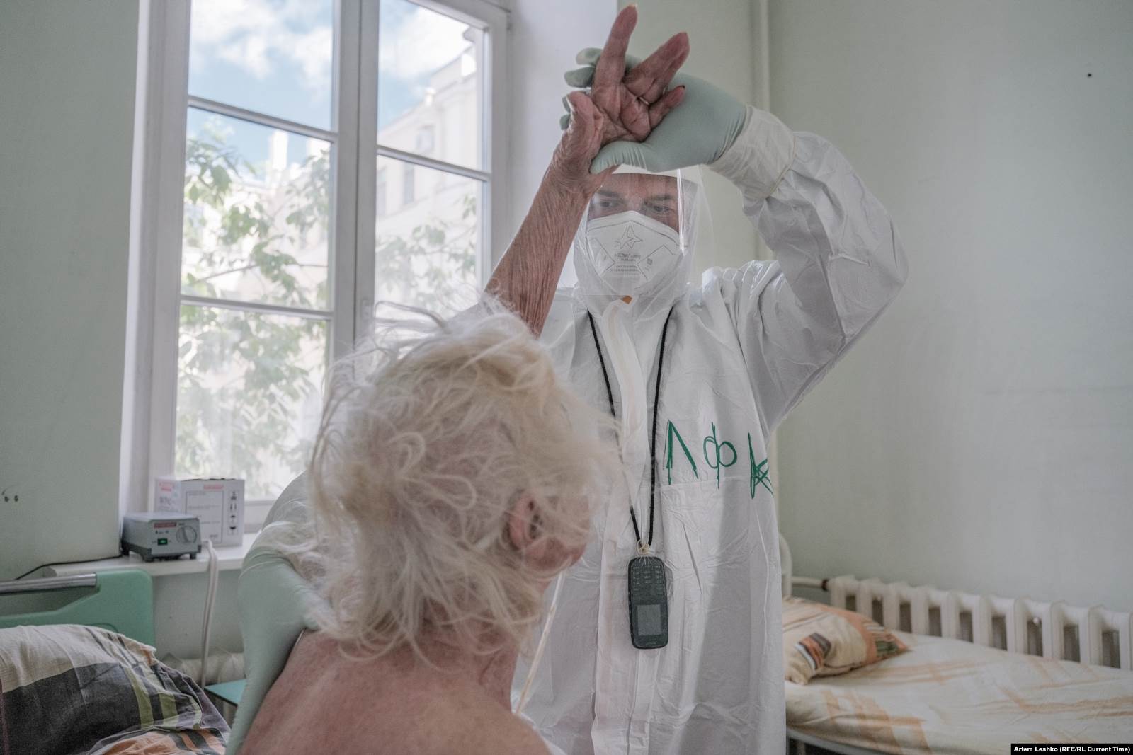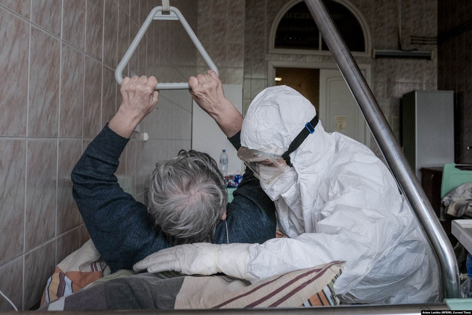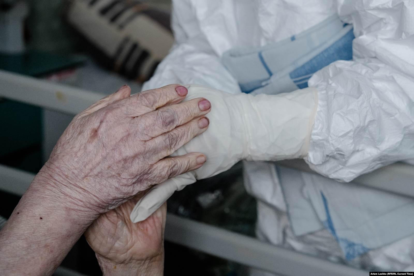 "Не люблю делать лишних движений. На диализе не было стационарных пациентов. Я протирала кресла, мыла полы, выносила мусор. Сейчас у меня работы больше. Наверно, в сто раз больше. Но мне, правда, нравится менять памперсы, обрабатывать пролежни. Может, потому что я человек верующий. Мне просто жить. Главное – найти баланс между молотом и наковальней: между соблюдением СанПиНов и людьми, – рассказывает Оля и спрашивает: – Потом самые красивые фотографии выложим на сайт знакомств? Никто не хочет со мной знакомиться. Ни одного ухажера. А подруги говорят: "У тебя такие мерзкие фотографии, кто вообще фото в СИЗе выкладывает, на них у тебя в глазах вечная усталость".