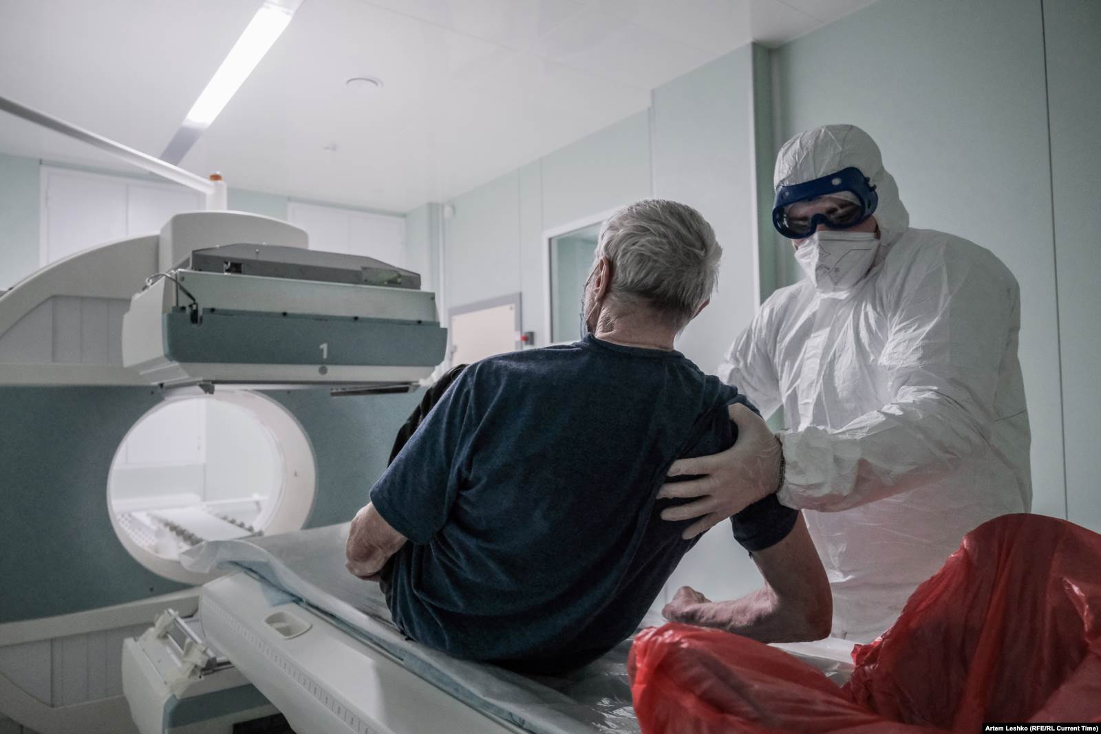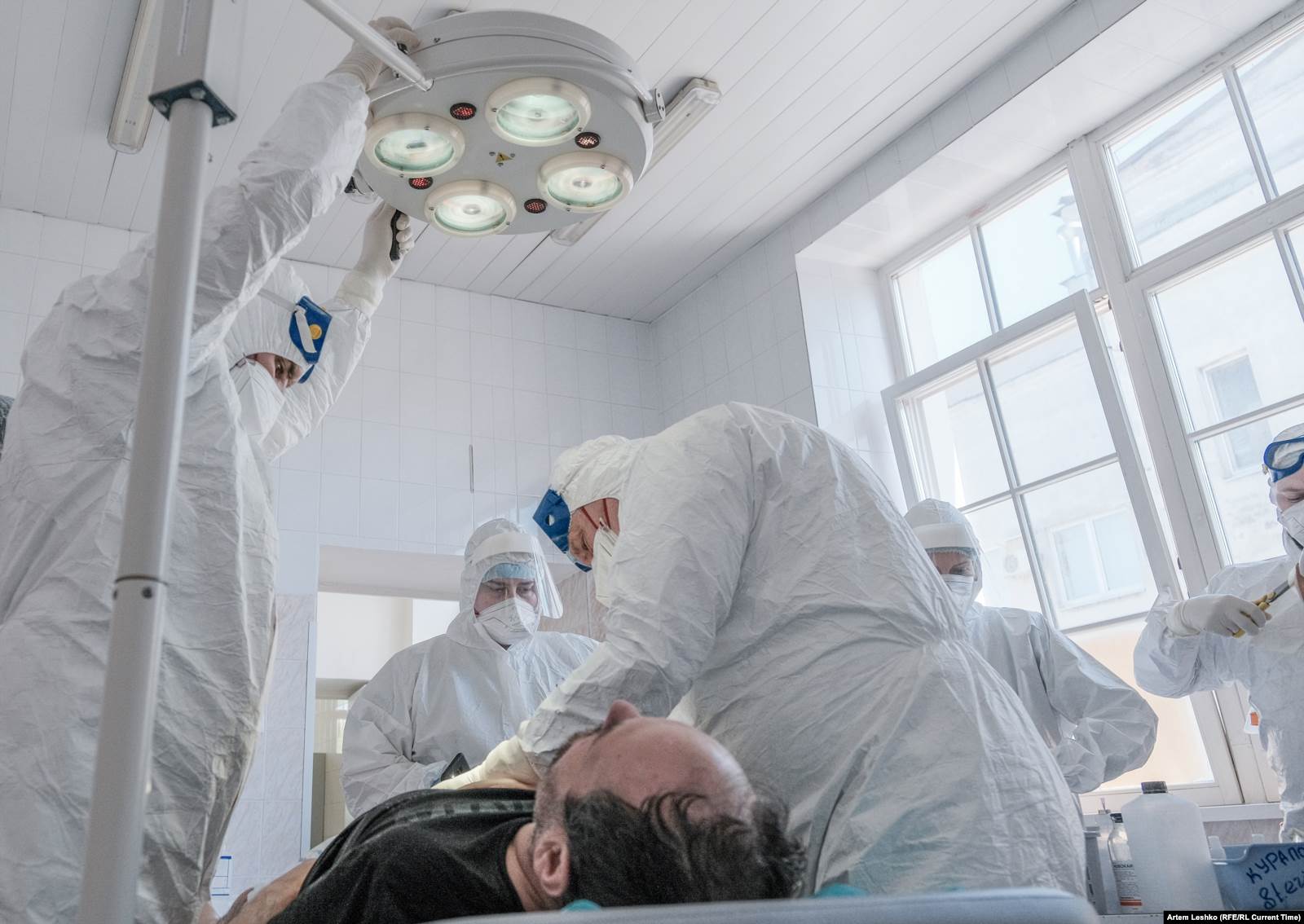 Корреспондент Настоящего Времени провел несколько смен в "красной зоне" вместе с врачами и пациентами инфекционного отделения Мариинской больницы. Между обходами и операциями говорили о непредсказуемости и агрессивности вируса, о работе без выходных и невозможности привыкнуть к смерти, даже когда видишь ее каждый день.