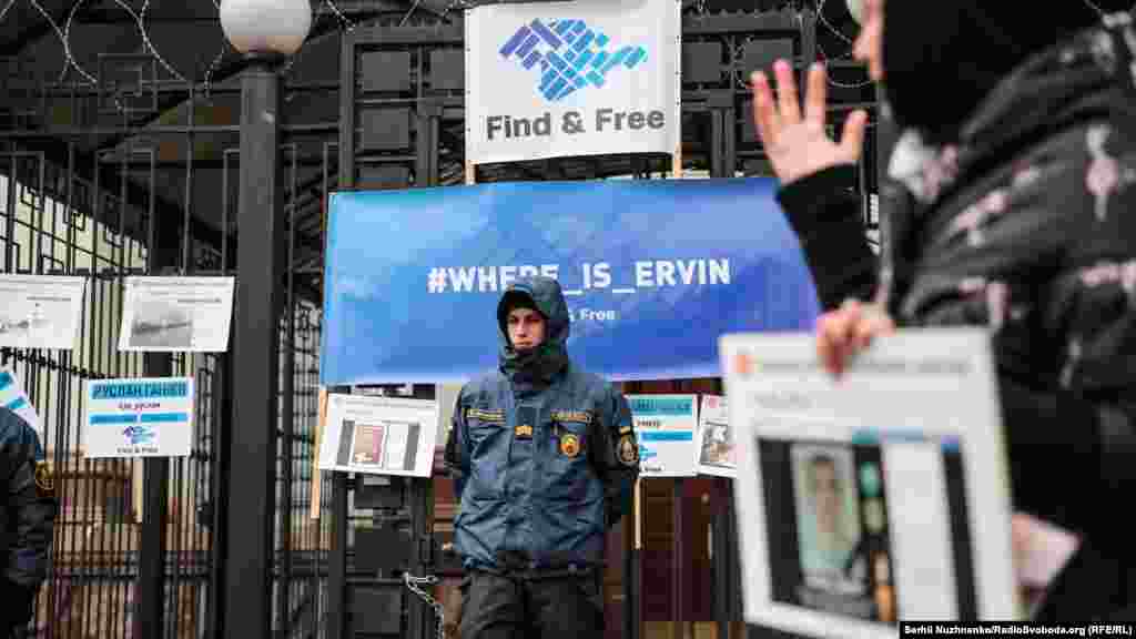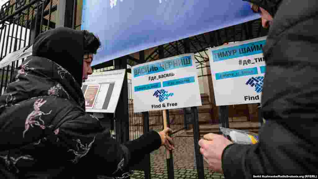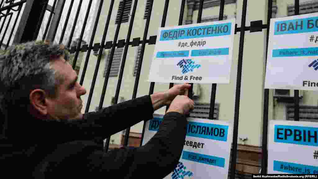 Под посольством России в Киеве 1 марта в рамках информационной кампании «FIND&FREE» прошла акция «Как антигерой «крымской весны» вызвал обострения у вежливых людей».