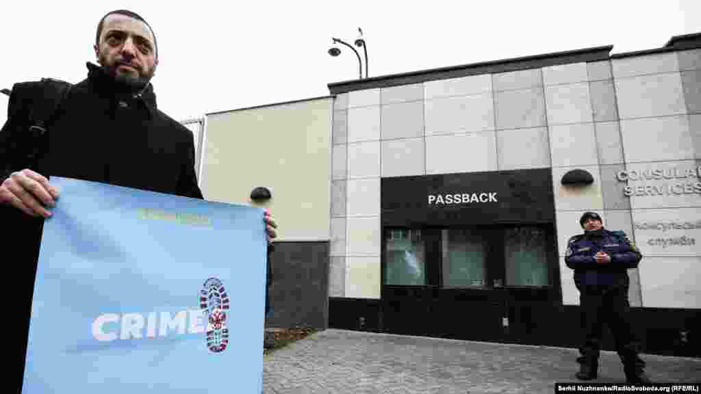 На плакатах у активистов были надписи «Крым будет свободным», «Путин, вон из Крыма» и другие