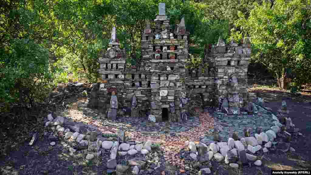 На лесной поляне недалеко от курортного села Морское расположился рукотворный «средневековый городок в миниатюре». Достоверно неизвестно, кто и когда построил эти каменные сооружения. В соцсетях говорят о некоем Дмитрие: мол, мужчина последние пару лет приезжает в Крым и на досуге «окультуривает» территорию у моря, в то время как другие отдыхающие оставляют после себя лишь кучи мусора. Более того, напоследок еще и крушат творение безымянного архитектора. Но тот каждый раз старательно собирает и укладывает камни на прежнее место.