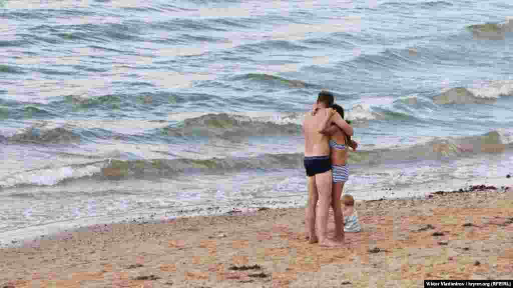 Село Песчаное – курорт Бахчисарайского района. Расположенное на юго-западном побережье Крыма, Песчаное – не менее популярно среди отдыхающих, чем другие туристические уголки полуострова. Песчаные пляжи и мелкое дно привлекают отдыхающих с детьми. Вот и эта пара наблюдает за тем, как ребенок играет у воды.