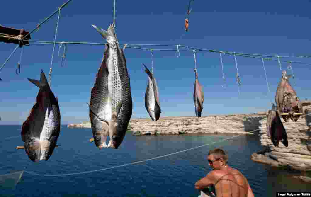 На западе Крыма у мыса Тарханкут полным ходом идет ловля кефали. Рыбаки завода «Тарханкут-регион» выходят на пустых лодках в море, а возвращаются уже с усыпанным рыбешками дном – улов приносят выставленные на воде сети. Продают ее там же: чистят от чешуи и внутренностей да вешают на крючок, чтобы стала вяленой.