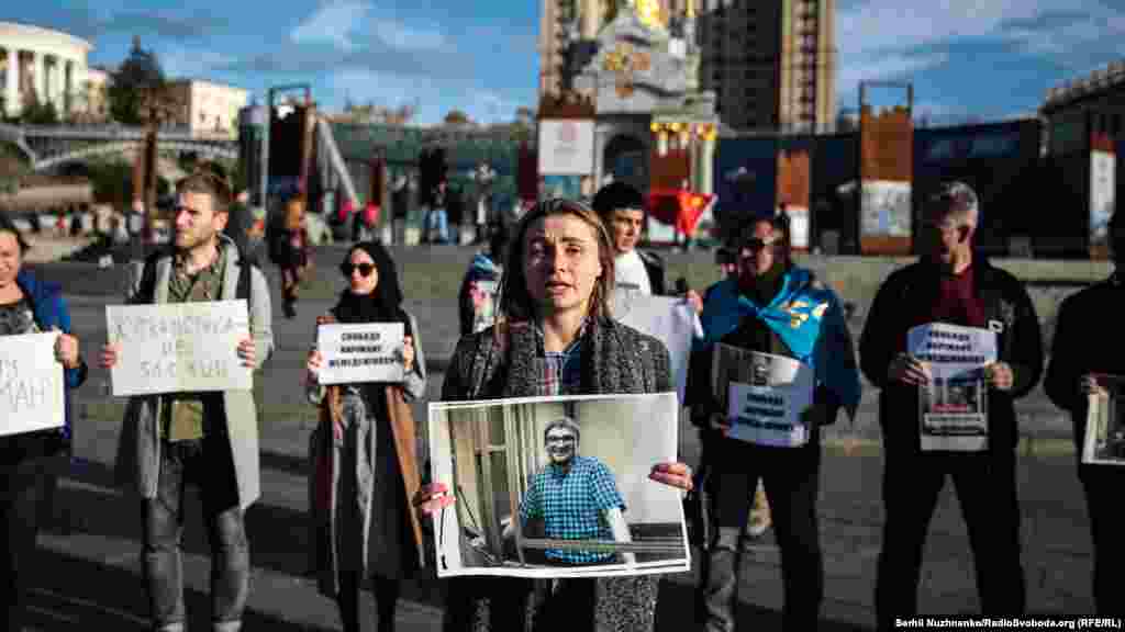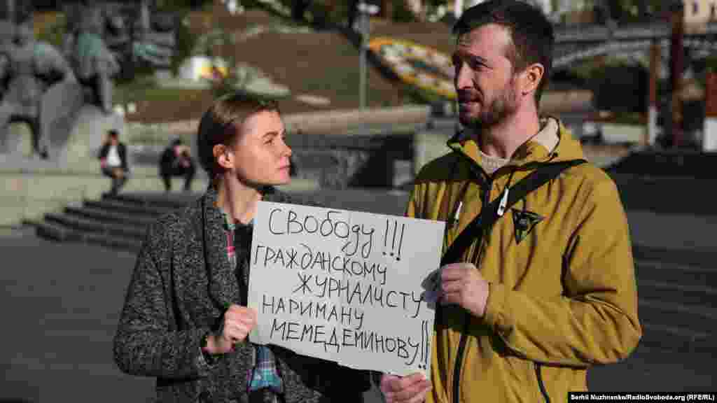 В Киеве на Майдане Независимости 1 октября прошла акция в поддержку гражданского журналиста, блогера из Крыма Наримана Мемедеминова, которого российские правоохранители обвиняют в публичных призывах к терроризму.