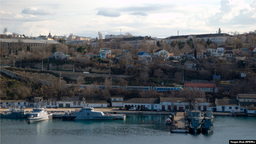 Электричка у входа в тоннель на восточном берегу Южной бухты | Крымское фото дня
