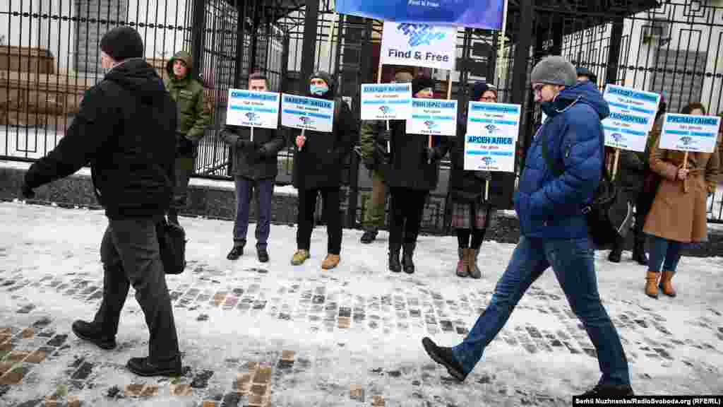 Под посольством России в Киеве прошла акция «Молчаливое знание или следствие ведут преступники», в рамках которой активисты общественной инициативы «КрымSOS» требовали от России расследовать насильственные исчезновения в аннексированном Крыму.