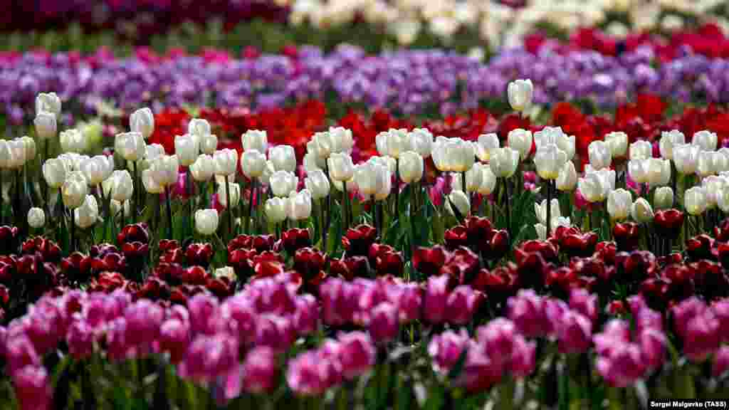 Крым.Реалии предлагают полюбоваться тюльпанами в Никитском ботсаду и их палитрой цветов.
