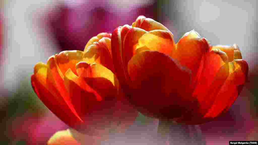 В Никитском ботсаду цветут тюльпаны. Сейчас там нет посетителей: парк закрыт до конца апреля. Из-за пандемии коронавируса выставку тюльпанов можно «посетить» только онлайн.