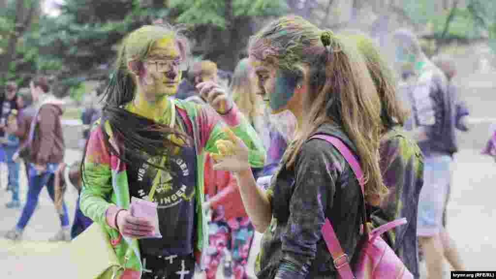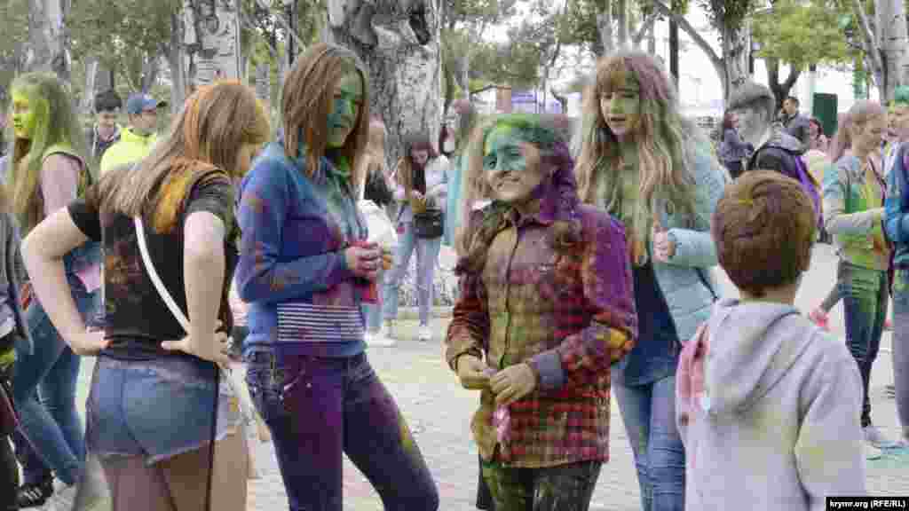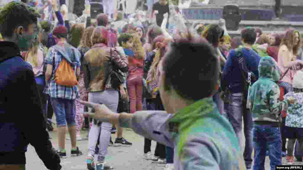В воскресенье 21 мая в Феодосии состоялся праздник красок. На площади возле светомузыкального фонтана дети и взрослые бросались разноцветными красками, танцевали, участвовали в конкурсах.
