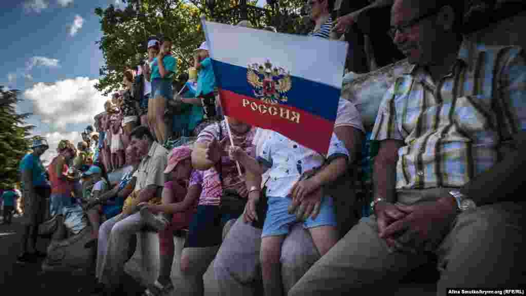 Служащие Черноморского флота устроили для горожан огромное действо в Севастопольской бухте. На праздник собралось более 100 тысяч зрителе. В морском параде участвовали 36 кораблей и авиационная техника.