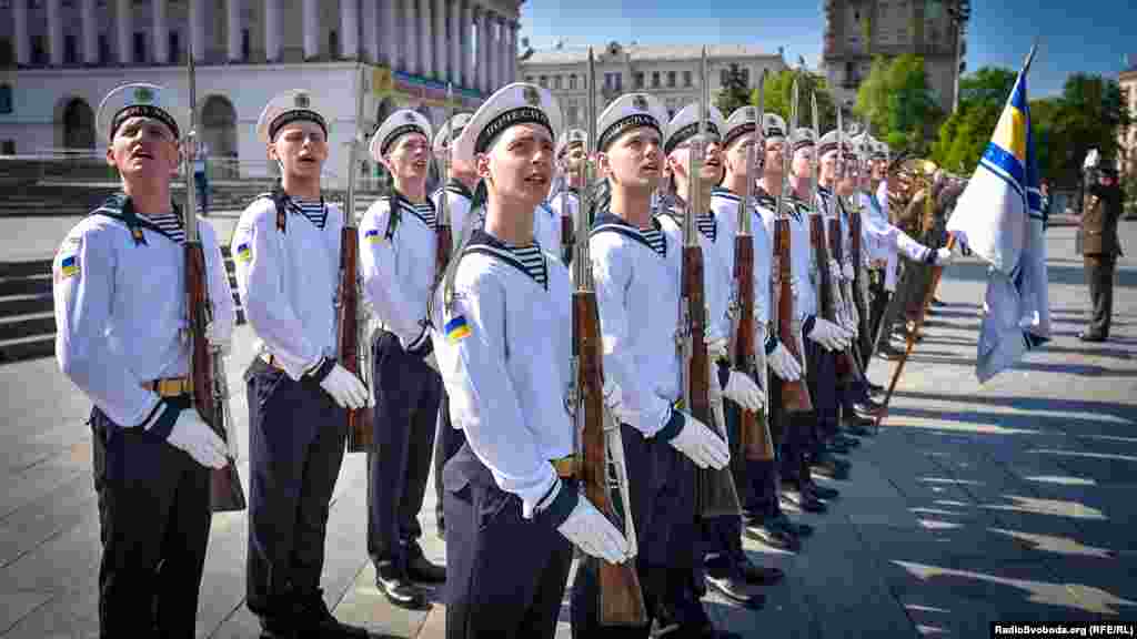 29 апреля в Киеве на площади Леси Украинки прошло торжественное поднятие флага Военно-морских сил Украины по случаю 100-летия создания Украинского военно-морского флота.