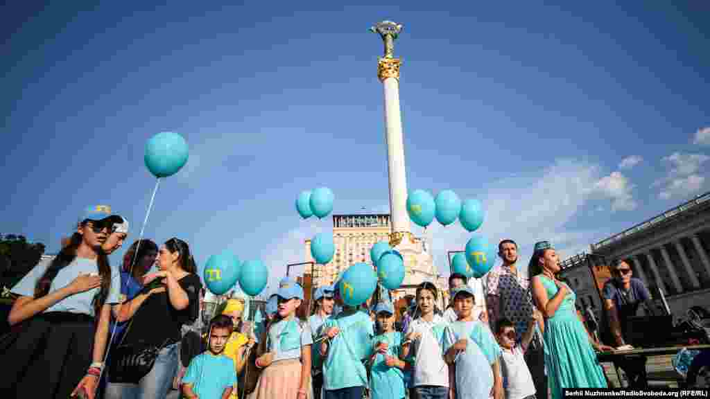 Мероприятие началось с шествия в центре Киева. Активисты развернули крымскотатарский флаг на пересечении улиц Крещатик и Богдана Хмельницкого, после чего прошли до Майдана Независимости