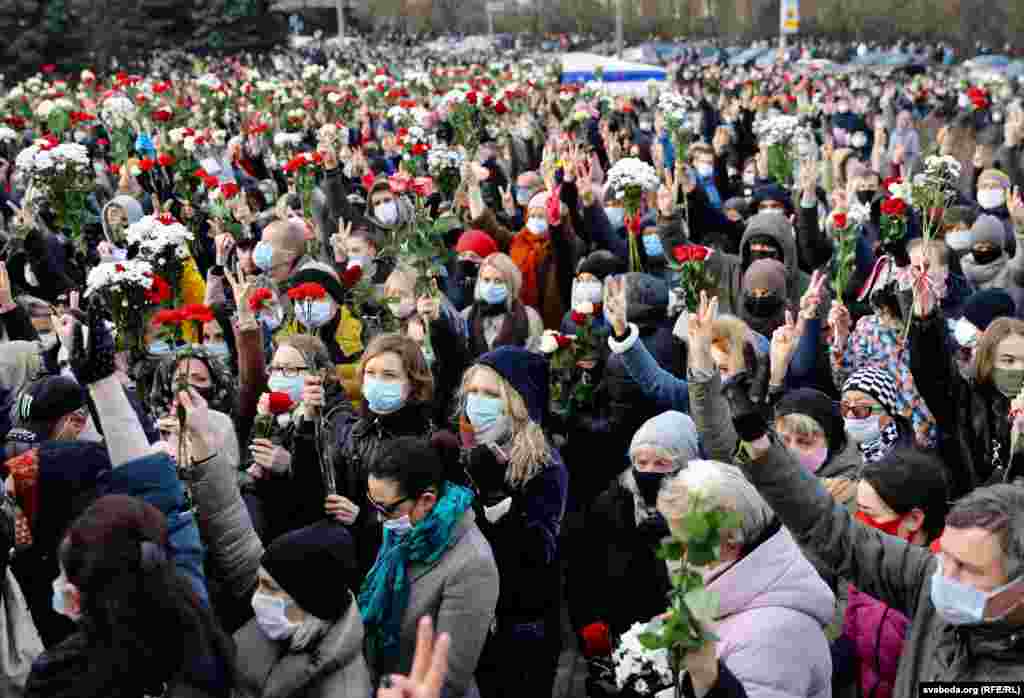 Около 5 тысяч человек попрощались с 31-летним Романом Бондаренко, который был похищен во дворе своего дома в Минске, доставлен в ОВД Центрального района, после чего был госпитализирован с черепно-мозговой травмой и прооперирован. Он умер после операции 12 ноября.