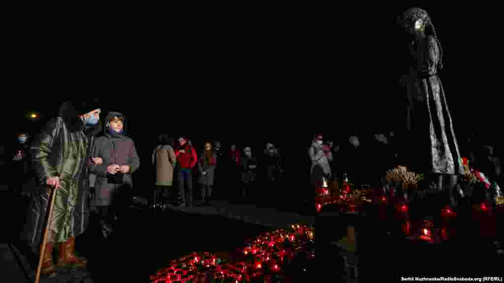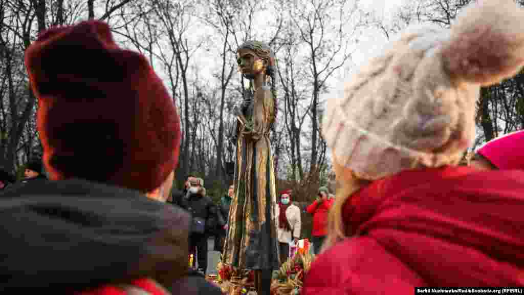 В Киеве возле «Мемориала жертвам Голодомора» собрались сотни людей, чтобы почтить память погибших от голода.